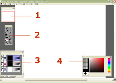Once you open your copy of openCanvas, you'll see that it's a pretty simple program, with